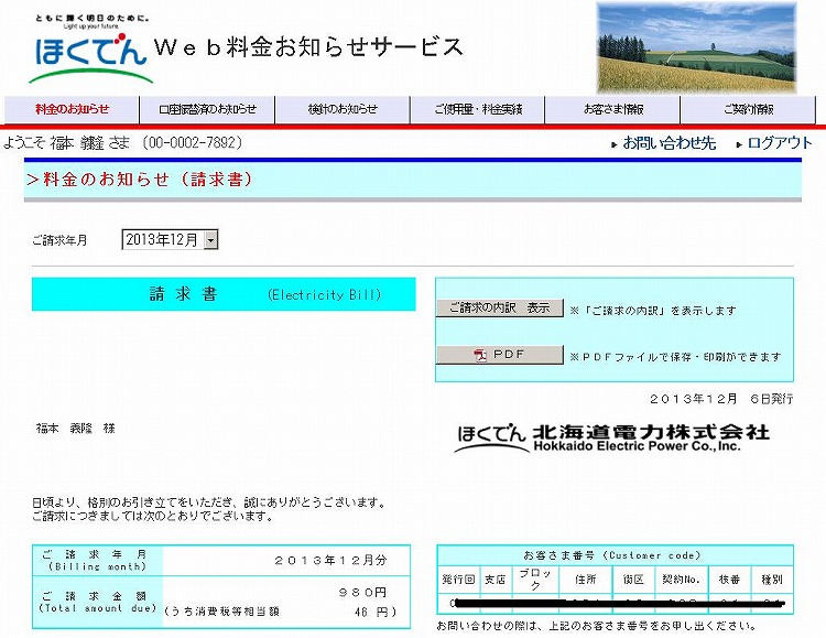 その、涙ぐましい努力と云うより、アホらしいと云うべき節電生活の成績表、つまり電気料金請求書がメールで来ました。